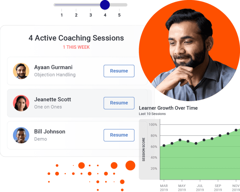 Review and aggregate coaching data to track the progression of each rep’s competency scores and easily identify areas for remediation.